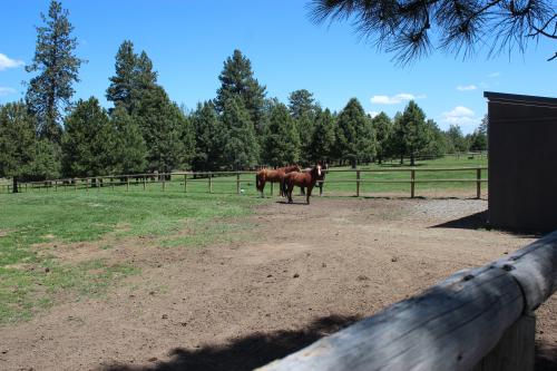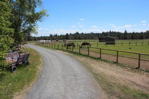 We're across the street from the Skyline Forest with its 40,000 acres of beautiful trails, and an easy ride to the famed Tumalo Reservoir trails and the Deschutes National Forest. We also have trails and obstacles onsite. Our barns and pastures are situated on a private acreage with rolling meadows, pine and aspen groves and mountain views.